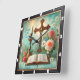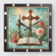 Crucifix Candlelight Bible Floral Square Wall Clock