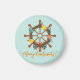 A festive design of a ship's wheel decorated with seashells and red berries, perfect for cruise lovers and travelers.