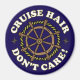 Cruise hair, don't care! Funny cruise ship cabin door magnet with a ship's wheel and messy hair quote