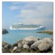 Cruise Ship at Coco Cay - Anchored safely offshore, away from the rocks and reefs, a freedom class cruise ship rests off the cruise line's private tropical island of Coco Cay, in The Bahamas.