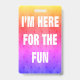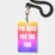 Handy cruise ship lanyard to attach your cabin stateroom key card to. Ask on the ship for your card to be punched. Fun and festive blue "I'M HERE FOR THE FUN" funny cruise ship badge. Great for first time cruisers to frequent cruisers who just want to have fun! Pink and other fun colours.