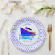 Fun nautical themed personalised wedding party paper plates with a cruise ship ocean waves and ships anchor graphic