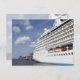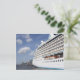 A postcard with a photo of a cruise ship. Send greetings to your family and friends from your cruise adventure! Sideways photo of a big, white cruise ship on the right, sky and fluffy white clouds on the left. Same image is on the back with transparency applied.