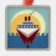 Cruise Ship Sunrise Silver Framed Square Ornament