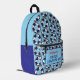 Fun cruise survival kit backpack patterned with blue and white ship lifebelts. All text is customisable so you can change the message and name