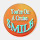 Happy reminder that live is good when you're traveling on a cruise vacation. Happy colors make this design give your a smile. "You're On A Cruise Smile" is a handy magnet to have while cruising. Place magnet on your metal cabin stateroom door and use as an easy stateroom cabin finder or use to pin up notes and papers on the back of your door.
