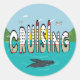 Cruising design uses the word "cruising" to create a cruise ship sailing to exotic foreign destinations across the blue seas. Includes sun, anchor, steam funnels and cabin portholes to create a fun graphic for fans of cruising vacations.