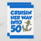 Cruising Her Way Into 50 cool birthday invite featuring a cartoon anchor. Celebrate someone turning fifty with this cool, boat themed invitation. Great for someone who is about to take a cruise or that loves boats.