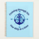 Nautical design in blue, that reads "Cruising through life one ship at a time".
