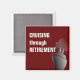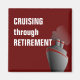 Cruising Through Retirement on a dark red background. If you are retired or are just about to take that plunge, and now have the time to take all those cruises you've been planning for so long, this magnet featuring an ocean liner is for you