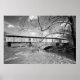 A photograph of Crum Bridge spanning Little Muskingum River near Rinard Mills, Ohio. Crum Bridge is an unusual example of a multiple king post truss with tied arch centre span. At 192', it is one of the two longest covered bridges in Ohio.