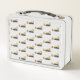 This is a standard metal lunchbox that appears to work just fine. We designed this box ourselves with an uploaded photo and custom text on the front and back. It looks absolutely beautiful except the front of the lunchbox is not centered like it shows in the photo. The print borders don't align with the inset flat part of the box where the preview photo online showed it perfectly centered in there. The back looks nice and centered though.