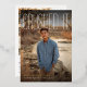 This modern graduation announcement template features a stylish multi-photo layout paired with bold typography for a confident, celebratory look. The front showcases a full-bleed portrait with a large statement headline, while the back includes space for additional photos and graduation party details. Soft, natural tones and clean design elements give this template a warm yet polished feel that works beautifully for both high school and college graduates. Fully customizable with photos, name, school, year, and event information, this versatile design is perfect for sharing graduation news and inviting loved ones to celebrate.