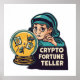 A cartoonish image of a psychic gazing intently into a crystal ball adorned with cryptocurrency symbols, her expression a mix of concentration and amusement as she attempts to predict the unpredictable fluctuations of cryptocurrency prices. This captures the speculative and unpredictable nature of the crypto market with humour.