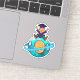 Celebrate the convergence of education and innovation with our eye-catching sticker featuring a graduate sitting atop a cryptocurrency globe.