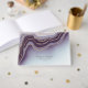 An eye-catching combination of a deep eggplant, amethyst, soft blue and white marbled agate, textured with faux-crystals and highlighted in glittering gold creates the background for the pieces in this coordinated collection. A clean, modern serif font and sprinkled specks of gold complete this striking design style. This elegant wedding Guest Book features all the above with a soft, watercolor background, and a template to easily add your names and wedding date. View the collection link on this page to see all of the matching items in this beautiful design or search ID825 to see additional colour choices for this set.