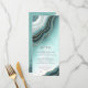 An eye-catching combination of a deep ocean blue, teal and white marbled agate, textured with faux-crystals and highlighted in glittering gold creates the background for the pieces in this coordinated collection. A clean, modern serif font and sprinkled specks of gold complete this striking design style. This elegant wedding reception menu features all the above with a soft, watercolor background, a shimmering teal texture on the back and a template to easily add your menu selections. View the collection link on this page to see all of the matching items in this beautiful design or search ID825 to see additional colour choices for this set.