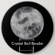 Crystal ball button that says: Crystal Ball Reader. For the mystic in you or the witch in your friend. Wear proudly all year, not just for Halloween.