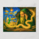Crystal ball mage in oil-painted vision holiday postcard
