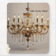 This striking image showcases an iconic chandelier, its intricate crystals and radiant lights meticulously detailed in fine lines. Bathed in golden hues, the chandelier embodies luxury and sophistication, creating a mesmerising interplay of light and shadow against a soft, light-coloured background.
