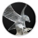 A black ceramic knob with a picture of a beautiful, elegant, and exceptionally detailed crystal eagle flaring its wings.