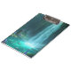 A glowing waterfall cascades into a turquoise pool, surrounded by vibrant crystals and lush moss.