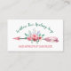 A soap and candle business card with a boho theme. It features a crystal and floral arrow logo.
