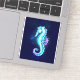 Sparkling, crystal, icy, polygonal, seahorse on dark blue background.