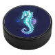 Crystal Ice Seahorse on Blue Background Hockey Puck