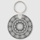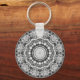 A keychain with an attractive twelve sided kaleidoscopic design.
