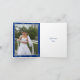 Crystal snowflakes blue wedding Thank You photo note card that features printed hanging crystal snowflakes and snow on medium royal blue background and your photo on the left inside. A modern and contemporary design for your winter December or Christmas wedding. This retro template design is part of a wedding set, is fully customisable and can be personalised. Note that there are not any real crystals or jewels or strass but they are flat printed images.