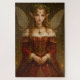 This enchanting work depicts a beautiful fairy adorned with holly in her hair. She wears a crimson dress embroidered with gold. Her serene expression and iridescent wings radiate elegant grace and eternal fantasy. Perfect for lovers of fairy tales, fantasy art, and magical elegance. This artwork was generated by AI based on original human concepts.