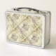 This is a standard metal lunchbox that appears to work just fine. We designed this box ourselves with an uploaded photo and custom text on the front and back. It looks absolutely beautiful except the front of the lunchbox is not centered like it shows in the photo. The print borders don't align with the inset flat part of the box where the preview photo online showed it perfectly centered in there. The back looks nice and centered though.