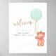 Simple, minimalist, modern watercolor teddy bear crown with party balloon over the cloud, perfect for baby shower expected in summer, fall, spring, winter.