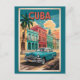 Cuba Classic Car Illustration Travel Art Vintage Postcard