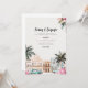 Cuban Landscape Invitation with cuban car, buildings and palm trees.