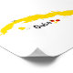 Simple map of the island of Cuba, complete with the word Cuba beside maracas.