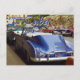 Havana Cuba postcard with vintage American convertible automobile, pretty purple blue with white interior