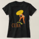 Big woman with yellow hat is looking at Cuba island. Funny vintage t-shirt design.