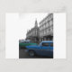 A picture of two vintage American cars parked in Havana in front of the famous hotel Inglaterra. The background is turned to black and white to let the cars stand out more.