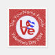 Personalised napkins show the Cuban LOVE FLAG. The word LOVE is featured in red letters inside a white, fractal circle. The circle sits on a red, fractal background. Perfect for Valentine's Day or any special time.