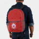 Personalised backpack showing the Cuban LOVE FLAG. The word LOVE is featured in red letters inside a white, fractal circle of squiggly squares. The circle sits on a red, fractal background, also, of squiggly squares. Perfect gift for Valentine's Day or any special time. Can be customised for any holiday and personalised with any name.