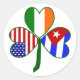 Classic round sticker with a shamrock features a flag in each leaf. United States, Ireland and Cuba are all represented. Great way to celebrate St. Patrick's Day, the 4th of July and any Cuban holidays, too.