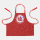 Fun kid's apron features the word LOVE, in red letters, with a heart shaped flag of Cuba for the O. The background is red, fractal, squiggly squares to make it a nice Valentine's Day gift. The LOVE is inside a white, fractal circle of squiggly squares. Personalise with a name, occasion, and year. Or, add your own text for any occasion or holiday.