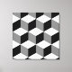 Optical illusion of shapes creating the pattern of cubes in black, white and grey.