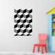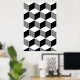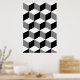 Optical illusion of shapes creating the pattern of cubes in black, white and gray.