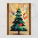 Cubism. Christmas tree modern abstract painted. Postcard