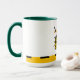Cuddle Seaon Mug comic style with colours: black, yellow, green, pink includes two tone mug colour.