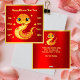 Send your greetings with our Cuddly Baby Snake Chinese New Year Holiday Card showing an adorable orange baby snake adorned with Chinese cultural elements. On both sides of the snake are a list of snake years in increments of twelve. You can also send this card to those who were born in the Year of the Snake as their birth-year is mentioned on the card. The text on the back is also customisable to make your new year greetings more personable and heartfelt.