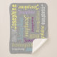 Cuddly Soft and Warm Sherpa Personalised Name Blanket. Pale Grey comfort with soft yellow, lavender, purple, aqua ice blue and white letters. Easily Personalised with the names and colour combinations of your choice for any room and every person. Especially nice for hard to find names, you can personalise many items any way you choose. You can make matching pillows, lamps and more.